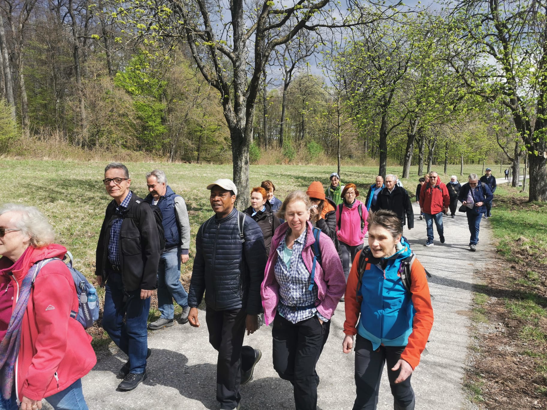 Insgesamt machten sich 24 Personen auf den ca. 2,5- stündigen Marsch, der Wettergott hatte auch mit uns seine Freude und die Sonne zeigte sich im Laufe der Wanderung immer öfter und länger. Es war ein wirklich freundschaftliches Sich-Austauschen, mit teils privaten, kirchlichen, geistlichen oder philosophierenden Gesprächen. Die gute Stimmung übertrug sich auf uns alle, obwohl insgesamt 4 verschiedene Pfarren vertreten waren, wahrscheinlich half uns auch der rundherum sich zeigende Frühling in all seiner Blütenpracht.