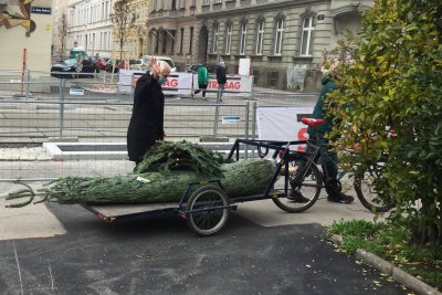 Christbaumtransport per Fahrrad